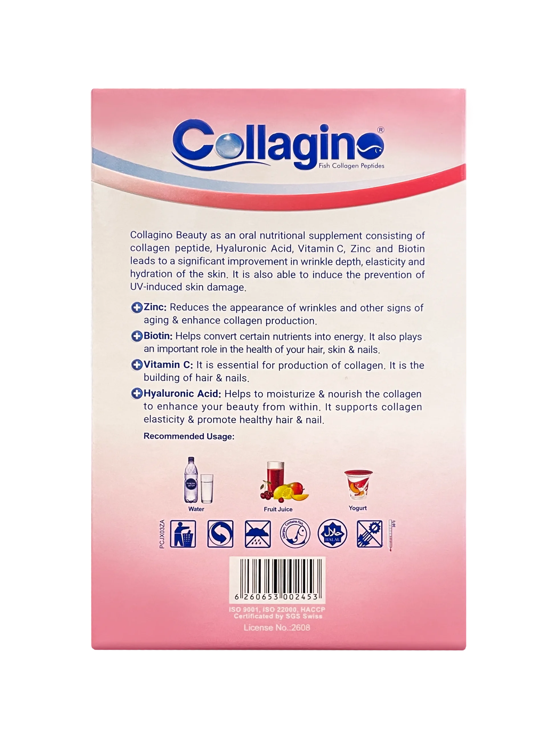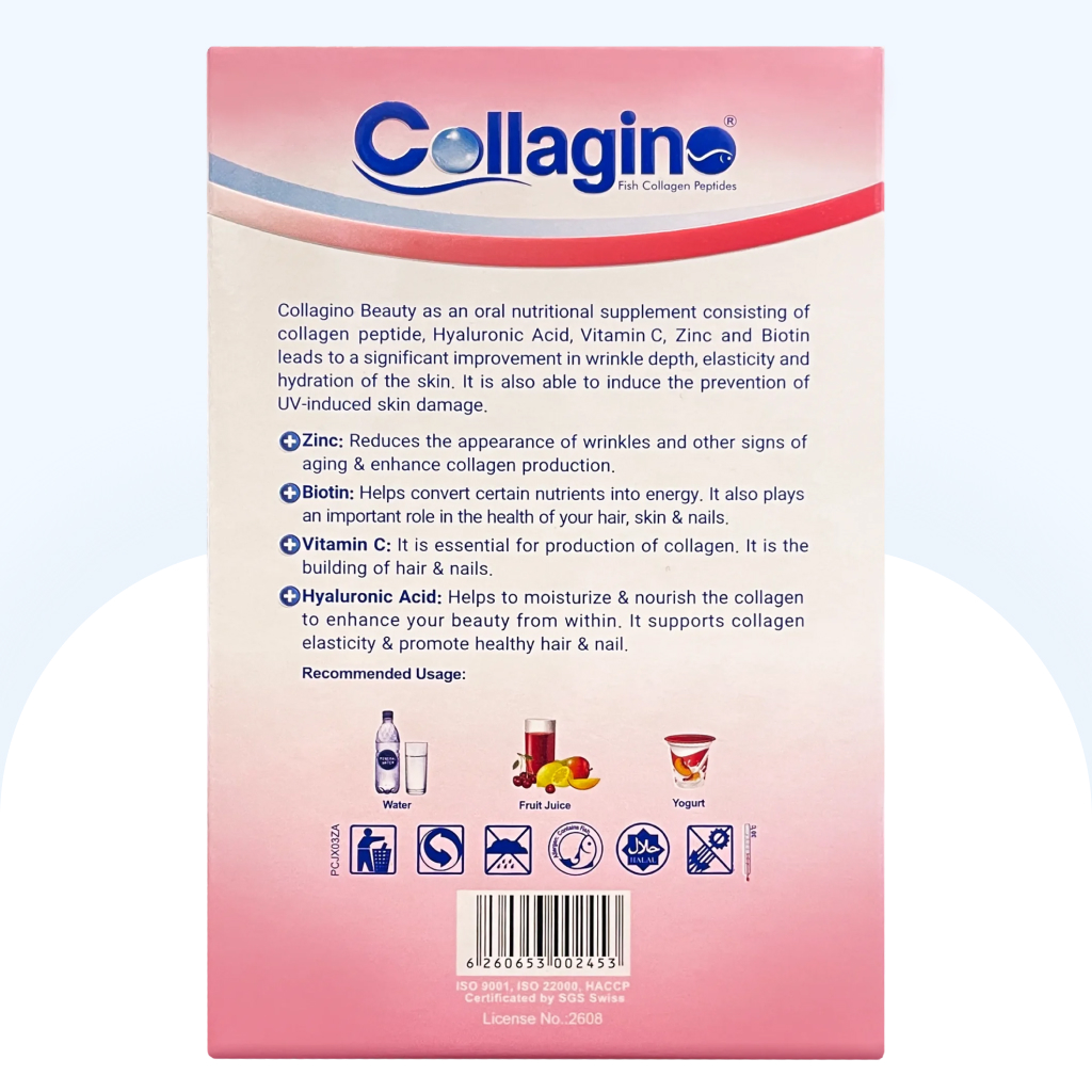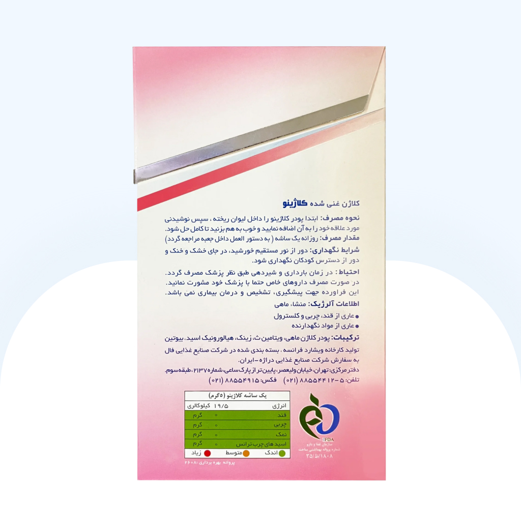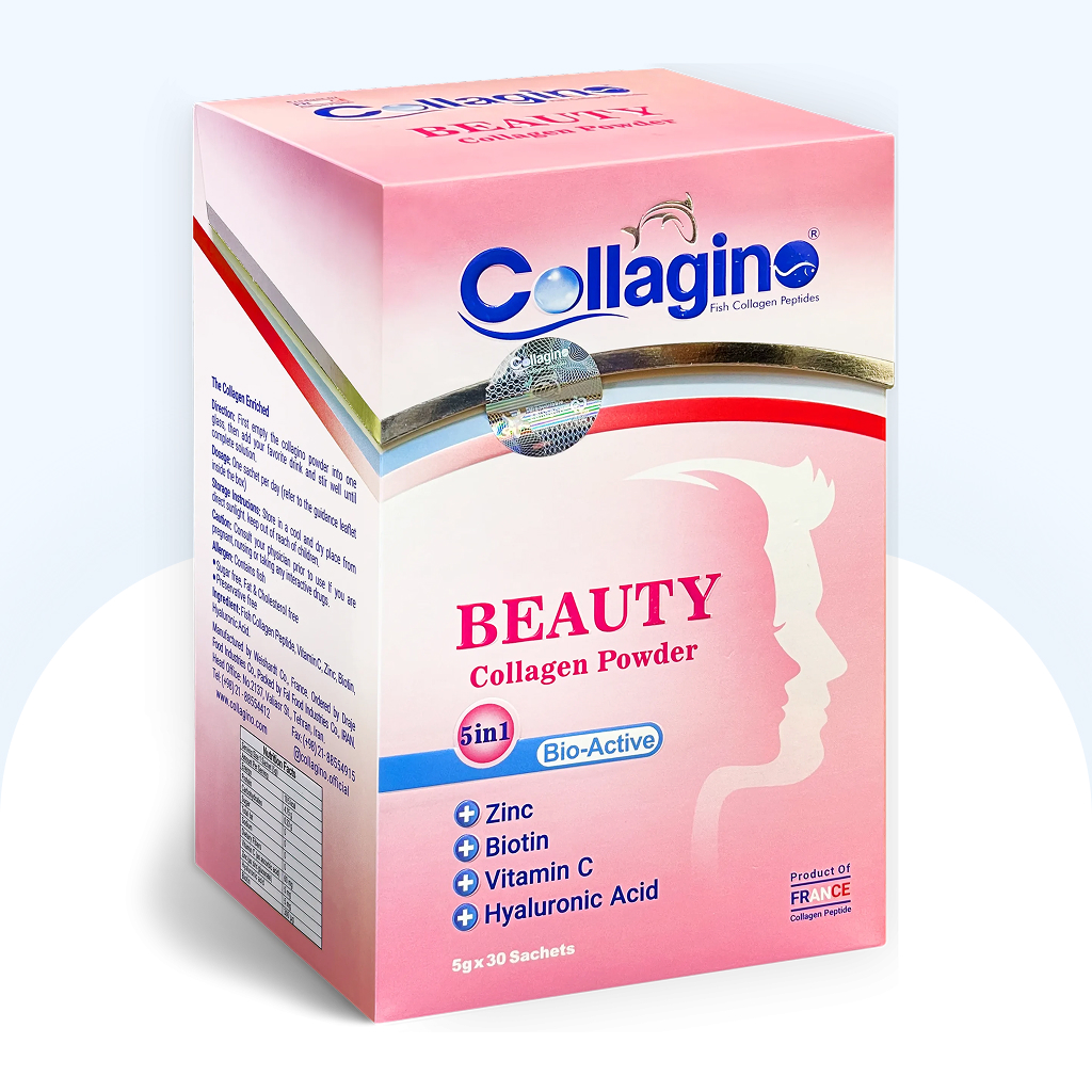 پودر کلاژن بیوتی کلاژینو یک مکمل ۵ در ۱ برای تقویت پوست، مو و ناخن است. این محصول با ترکیب کلاژن ماهی، ویتامین C، زینک، بیوتین و هیالورونیک اسید، به افزایش جوانسازی پوست، کاهش چینوچروک و حفظ لطافت و شادابی پوست کمک میکند. این محصول فاقد قند، چربی، کلسترول و مواد نگهدارنده بوده و مناسب افرادی با رژیم دیابتی یا کتوژنیک است.